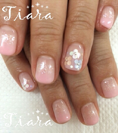 こんにちは☆ 目黒店、ナガヌマです(*´∀`*) 肌なじみのよい 淡いピンクのグラデーション♡ ポイントにホロのお花をたくさんつけました♪ 春らしくさわやかに♪ とてもかわいいですね♪ JUGEMテーマ:ジェルネイル JUGEMテーマ:春色ネイル