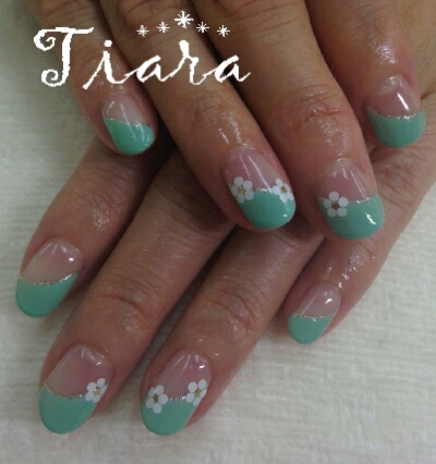 こんにちわ(^ ^)スタッフ遠藤です。 ネイルのご紹介です! 春らしいグリーンでななめフレンチにし、 ホログラムでお花をつくり、 とても可愛いネイルが仕上がりました(*^^*) 今の季節、お花が人気ですね JUGEMテーマ:ジェルネイル JUGEMテーマ:春色ネイル