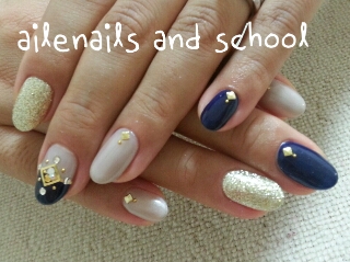 ベージュとネイビーの私の大好きな組み合わせカラー♡ ゴールドのスタッヅスクエアやダイヤ型を使うことでエスニックな 雰囲気に仕上がりました♪ 出張ネイル 10800円コース 出張ネイル詳細は こちら♡ 8800円コース 10800円コース 出張セルフネイルスクールは こちら♡ ・8000円からのオプションスクール ・全ての行程セルフネイルスクール ・お手軽セルフネイルスクール ・両手仕上がるお手軽スクール お気軽にお問い合わせください♪ 質問、お問い...