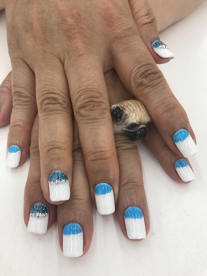 JUGEMテーマ:ネイルブログ こんにちは☆ 今日も雨がザーザーでムシムシですね((+_+)) 今年の夏はとても暑いらしいですが・・・・・ みなさん、ネイルでテンションUPして乗り切りましょう!! 最近はブルー系ネイルがとても人気(*^-^*) お手元も涼しげな雰囲気がよいですね!! シンプルネイルはとっても大大大人気!!! シアカラーがたくさん入荷しておりますので この機会にカラーでオシャレ楽しみましょう☆ こちらのカラーは真っ白で...
