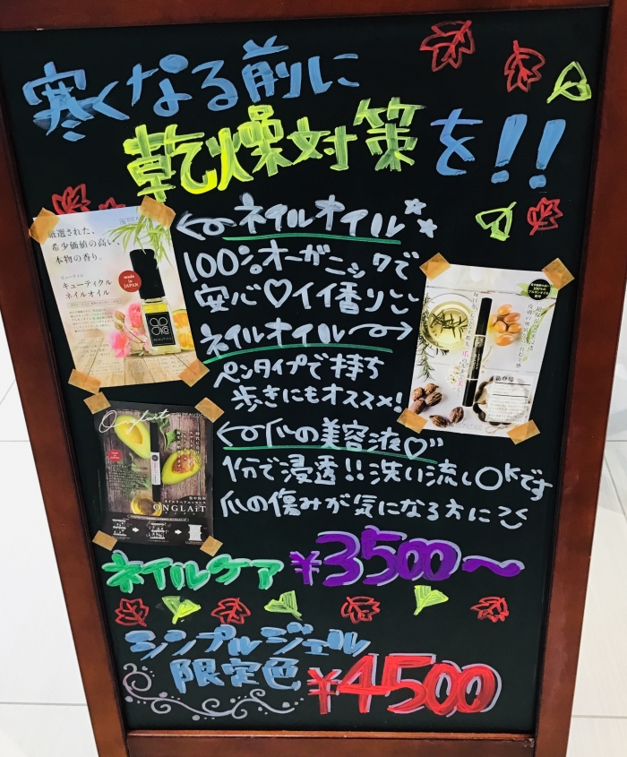 こんにちは(^^) ネイルキューブ津みなみ店です★ もう9月に入り秋になってきますね(^^) 今日はネイルオイルとネイル美容液のご案内です! 寒くなる前に乾燥対策をしましょう♪ 当店のネイルオイルは自社製品で100%オーガニックで安心です(^^) ボトルタイプとペンタイプがありペンタイプは持ち運びに便利です★ ネイル美容液は二枚爪や爪が割れやすい方にオススメです! 爪に栄養を与え丈夫な爪へ(o^^o) 他にも ネイルケア3500円〜 ジェルネイル...
