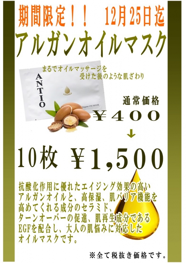 こんにちは🌞 ネイルキューブ市野店です💅🎶 乾燥が気になるこの季節。。。 保湿しても夕方にはカサカサしてくる💭 ひび割れ、粉吹きが気になる💭 そんなお悩みお持ちではありませんか? 本日はそんな皆様にピッタリ💓の、 オススメ商品をご紹介いたします😆‼ ⭐アルガンオイルマスク⭐ ローズツリーマスクで人気のANTIOから、 オイルベースのフェイ...