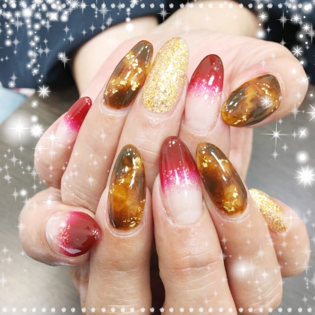 JUGEMテーマ:ジェルネイル JUGEMテーマ:ネイルブログ こんにちは ネイルネイル鶴見緑地店です 本日も素敵なお客様ネイルのご紹介をさせて頂きます ではでは早速 まずはコチラ 毎年大人気のべっ甲アートです💓 ボルドーのグラデーションと綺麗にマッチングした素敵なデザインです💘 続きまして。。。コチラ フットネイル✨✨ 秋らしいカラーですね😊 ゴールド...