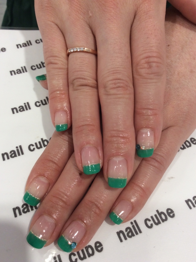JUGEMテーマ:ネイルブログ こんにちは😃 ネイルキューブ名古屋茶屋店です(^^) もうそろそろ梅雨明けでしょうか(*^^*) 早く明けてほしものです(´-`).。oO お客様ネイルのご紹介です💕 フラットデザインのフレンチネイルです(//∇//) グリーンがとっても可愛いですよね〜❤ アクアマリンとクリスタルのストーンがアクセントになってますます可愛さUP❣(≧∀≦) お色も多数ありますのでご相談下さいま...