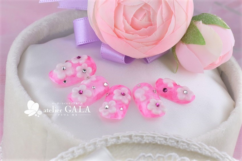 JUGEMテーマ:オーダーネイルチップ こんばんは。 とうとうゴールデンウィークも終わってしまいましたね。 お休みだった方は満喫できましたでしょうか。 お仕事だった方はお疲れさまでした。 今日は昨日からディズニーつながりのネイル紹介です。 ピンクベースのマーブル柄に、3Dのお花をたくさん咲かせました。 よく見ると、その中に隠れた〇3つのみっきーさんが隠れているのが分かりま...