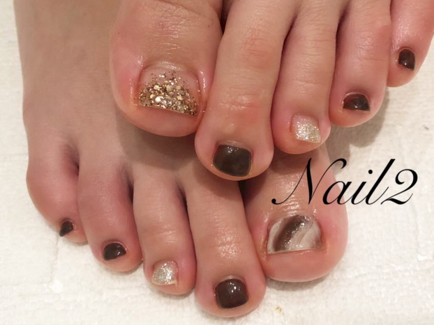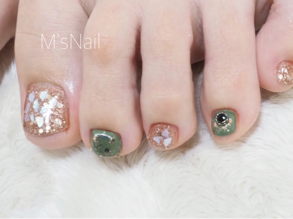 JUGEMテーマ:ジェルネイル ブラウン系のグリッターカラーとカーキの組み合わせが大人っぽい フットのネイルがしてあると気分が違いますよね☆ 暖かくなってくる、これからフットの季節ですね〜(^^♪ ホットペッパー ビューティにて 24時間ご予約受付中です☆ その他ネイル動画はyoutubeこちらからどうぞ☆