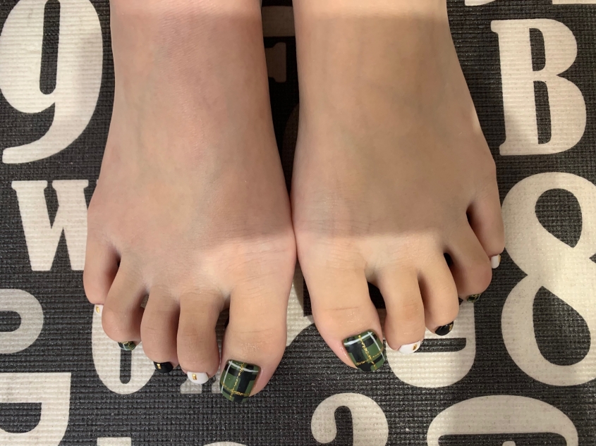 JUGEMテーマ:ジェルネイル こんにちは〜❤ ネイルキューブ津南店です💅 続きましてフットのお客様ネイルです👣💓 グリーン×ブラックのチェック柄ネイルです💚🖤 大人っぽく可愛さもありますね😊✨ 最近入荷したマットトップコートで仕上げました💖 一気に冬っぽさも増すのでオススメです🥰✨ 本日お席空きがございます❤ お...