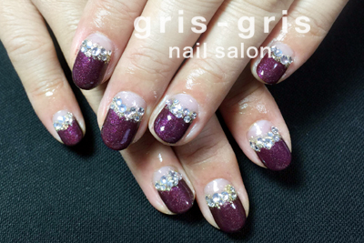 ダークなオックスブラッドのフレンチです。少しパールを入れて深みを出してみました。フレンチ際に散りばめたクリアストーンとのコントラストが際立つ大人ネイルです。参考価格¥9800桜新町 駒沢 ネイルサロン グリグリJUGEMテーマ:ジェルネイルJUGEMテーマ:カルジェル Calgel