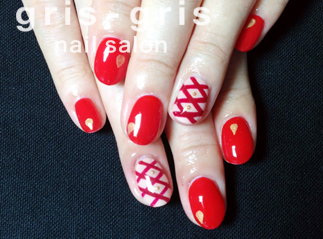 深い赤で描いたネット柄がポイントのネイルですワントーン明るい赤のワンカラーには小さなマットゴールドの雫がぽちょんぽちょんとのっています参考価格 ¥8400世田谷区 桜新町 ネイルサロン グリグリJUGEMテーマ:ジェルネイルJUGEMテーマ:カルジェル Calgel