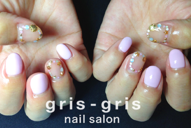 ミルクピンクのワンカラーとクリアベースの囲みアートのネイルですシェル金具とパステルカラーの優しい色みのホログラムが海のイメージです参考価格 ¥7280世田谷区 桜新町 ネイルサロン グリグリJUGEMテーマ:ジェルネイルJUGEMテーマ:カルジェル Calgel
