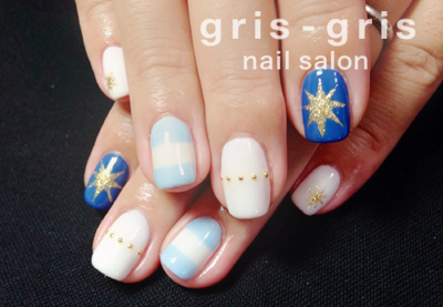 コバルトブルーにが印象的なネイルです。ブルーとホワイトを基調に、ボーダーなどを入れて紋章のようなデザインを意識してデザインしました。参考価格¥8000桜新町 用賀 ネイルサロン グリグリ JUGEMテーマ:ジェルネイルJUGEMテーマ:カルジェル Calgel