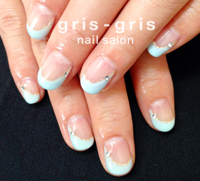 ティファニーブルーのバイアスフレンチです清潔感たっぷり清清しい印象です参考価格 ¥8000世田谷区 桜新町 ネイルサロン グリグリJUGEMテーマ:ジェルネイルJUGEMテーマ:カルジェル Calgel