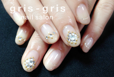 シンプルなペールベージュの上に、印象的ににストーンを散りばめました。エレガントでステキですね〜参考価格¥8600桜新町 駒沢 ネイルサロン グリグリJUGEMテーマ:ジェルネイルJUGEMテーマ:カルジェル Calgel