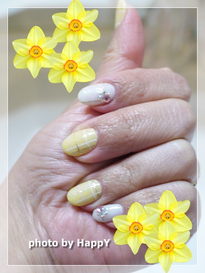 JUGEMテーマ:カルジェル Calgel 先日、ネイルチェンジしてきました^^ イエローと白のネイルです♪ イエローには、ピンクと白、ゴールドで チェック柄にしてもらいました。 白の部分には、 ストーンを置いてもらったよ! ネイルを変えると、また気分も変わってスッキリします お値段は7,000円でした〜 (消費税アップで少し高くなった) 私が利用している所は セット料金なので あらかじめ値段がわかるんです。 まずデザインを選んで 色やストーンの種類は自由なんですよ^^ ■...