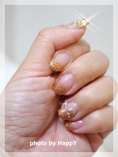 JUGEMテーマ:カルジェル Calgel 何日か前にネイルをしに行ってきました^^ 今回は、ブロンズのようなゴールドのラメ♪ 時間もあまりなかったので 先端にラメをいれて、少しストーンをのせました 私は肌色がイエローベースなので ゴールドや黄色は肌馴染みがいい。 そういう時って、人から褒めらるから嬉しいな^^ 爪の甘皮や形を整えてもらって(ケア) ストーンを何個かのせてますが これで4,500円くらいだったかな〜?? かなり安いです^^ 私は『カルジェル』というジェルで...