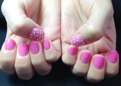 フーシャピンクのワンカラーネイルです。そして親指には白のドットを全面に入れました。草間風でかわいいです!参考価格¥7200桜新町 駒沢 ネイルサロン グリグリJUGEMテーマ:ジェルネイルJUGEMテーマ:カルジェル Calgel