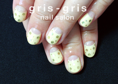 パステルイエローにゴールドドットの組み合わせですイエローとゴールド、相性抜群です参考価格 ¥8000世田谷区 桜新町 ネイルサロン グリグリJUGEMテーマ:ジェルネイルJUGEMテーマ:カルジェル Calgel