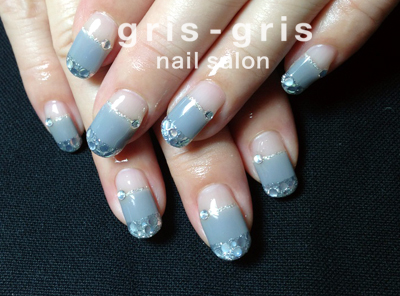 そろそろ秋らしい感じで深いグレーのフレンチです先端にシルバーグリッターでキラキラッとメタリック感を加えて華やかに仕上げました参考価格 ¥9000世田谷区 桜新町 ネイルサロン グリグリJUGEMテーマ:ジェルネイルJUGEMテーマ:カルジェル Calgel