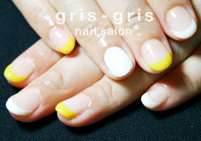 レモン色と白で爽やかカラーのフレンチです薬指1本だけワンカラーの白にして遊び心をプラス参考価格 ¥7000世田谷区 桜新町 ネイルサロン グリグリJUGEMテーマ:ジェルネイルJUGEMテーマ:カルジェル Calgel