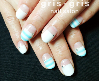とっても爽やかな水色と白のボーダーネイルです清潔感いっぱいの夏ネイルです参考価格 ¥7800世田谷区 桜新町 ネイルサロン グリグリJUGEMテーマ:ジェルネイルJUGEMテーマ:カルジェル Calgel