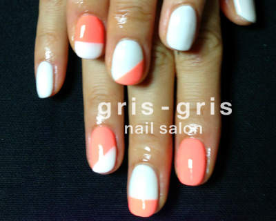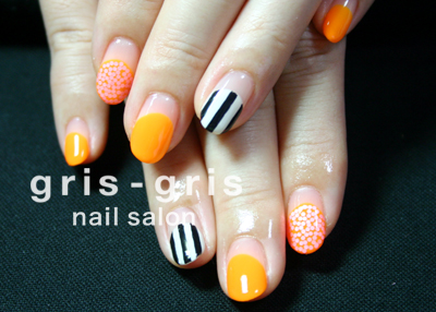 ミルキーネオンオレンジと白のバイカラーネイルですパキッとコントラストのある配色が目を惹きます参考価格 ¥7400世田谷区 桜新町 ネイルサロン グリグリJUGEMテーマ:ジェルネイルJUGEMテーマ:カルジェル Calgel