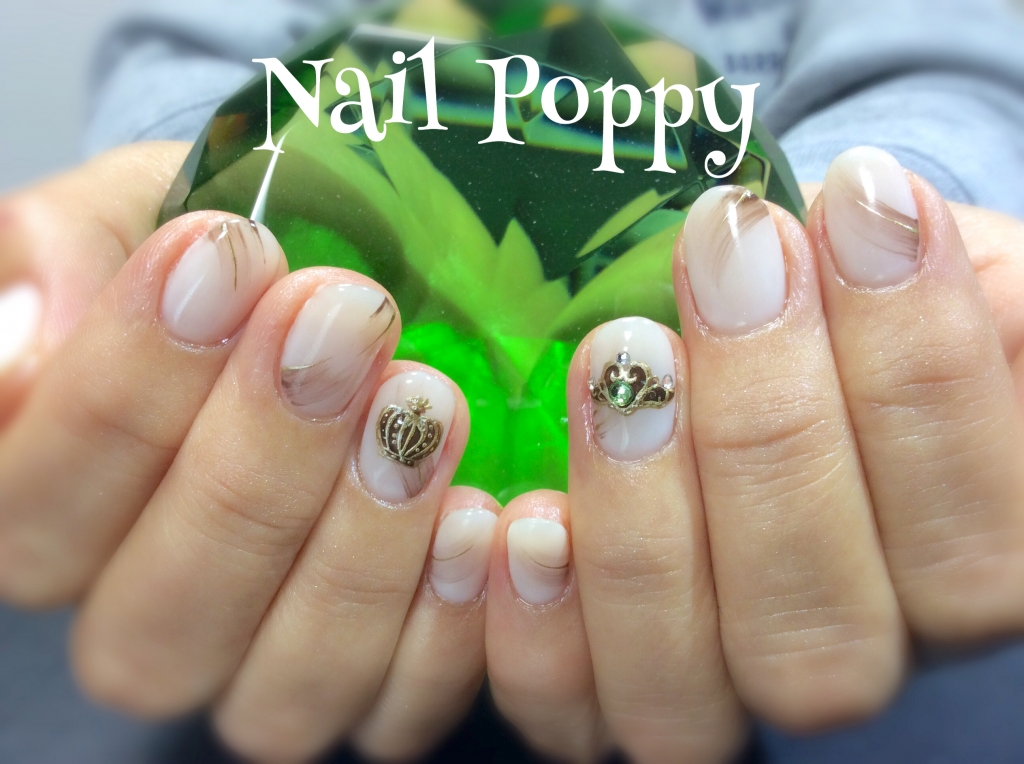 JUGEMテーマ:ネイル 好評のフェザーデザインに クラウン&ティアラ エレガントかつ カッコよく (○´U`○)bイイ!!!!!! ティアラにはペリドットの グリーンがキラッ いつもはソフトなイメージの ネイルをしていたO様 少しハード目デザインでイメチェン 指先が変わるとファッションも 自然と合わせるようになるから この一ヶ月はいつもと違うかも? ...