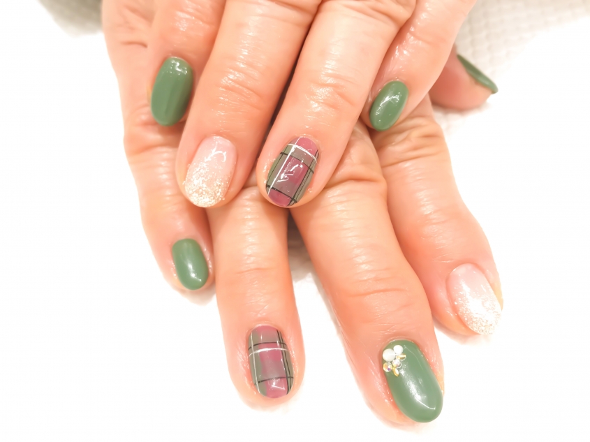 こんにちは🐹✨ ネイルキューブ座間店です❄ 本日のお客様ネイルのご紹介です↓ お客様初挑戦のグリーンに、暖かみのあるチェックを追加しました^ - ^ ポイントに入れたラメグラデーションは純銀グリッターでキラキラに✨ 今年最後のご来店でしたが、また来月お会いできるのを楽しみにしております❣ いつもありがとうございます。 【参考価格:9,900円】 ネイルキューブ座間店 08039963082 イオンスタ...