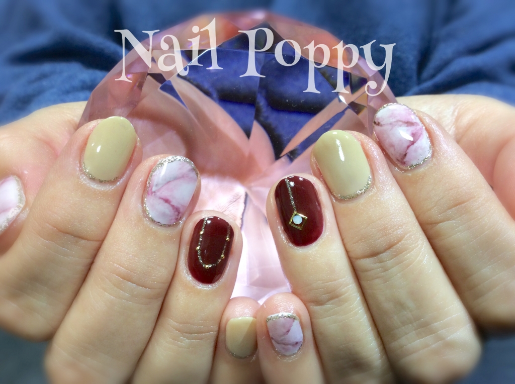 JUGEMテーマ:ネイル 人生2回目のジェルネイル ネイルチェンジのベース一層残しも 問題なくできて一安心です 12月に入りクリスマスもあるし ボルドー系の赤を使って大理石風に 大理石&アクセ ベージュの抜け感も◎ ロングのネックレスとピアス 太めのラメラインが華やか ハワイ帰りのO様 気温差は20℃以上 寒くて縮こまっちゃうけれど こんがり小麦色の...