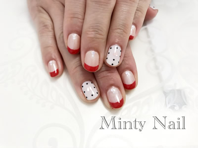 JUGEMテーマ:ジェルネイル JUGEMテーマ:ファッション JUGEMテーマ:ネイル 鮮やかなあかいろのフレンチネイルにドットデザイン ■FLC