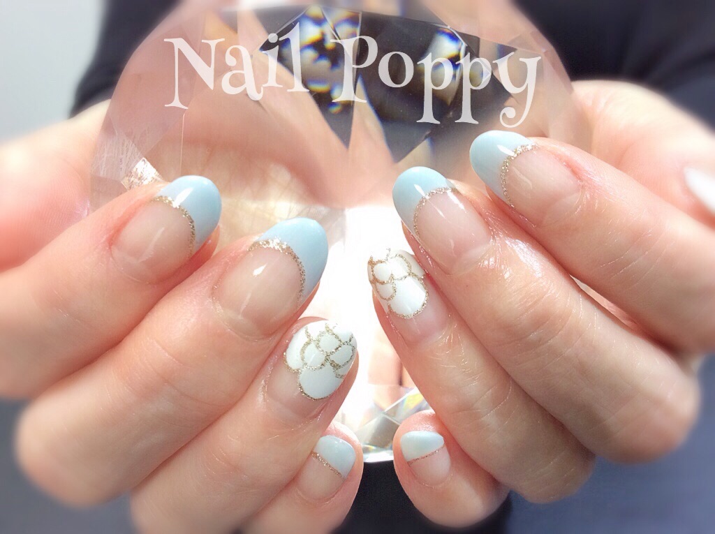 JUGEMテーマ:ネイル ワンポイントに大輪のお花 カメリアフラワー ブルーグレーの斜めフレンチと グレージュのカメリア どちらもグレー系の落ち着いた色なので ラメラインを少し太めにして目立たせました 。* ゚ + 。・゚・。・ヽ(*´∀`)ノ 暖かくなるとブルー系したくなりますねー