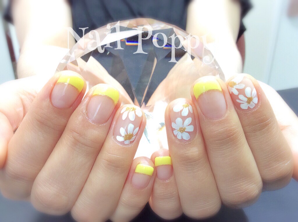 JUGEMテーマ:ネイル 色を付けるだけがネイルじゃない クリアネイルって綺麗 ゚+.(o´∪`o)゚+.゚ クリアネイルの上に 白くて可愛いお花が咲きました シンプルフラワー マーガレットみたい イエローのフレンチで可愛さUP 心地良い風が吹いてきそうですね 初夏の札幌 日中は半袖で過ごせる様になりましたね 服も気分もネイルも 夏仕様に着替え...