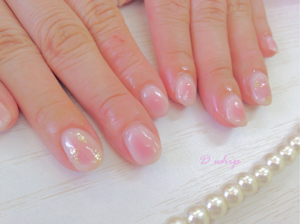 JUGEMテーマ:ネイル ピンクのグラデーションとゴールドラメの組み合わせで、 癒し系のお手元に オフィス向きで、好感度アップしそうですね ★カラーグラデーション+ラメ 定価6,200円