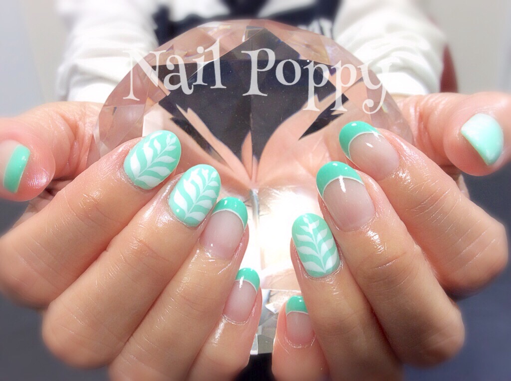 JUGEMテーマ:ネイル 今日は『緑』にしたい!と言って 爽やかな色をチョイス グリーンリーフ 大きな白い葉っぱが印象的 2色のグリーンでさりげないメリハリ 親指は華奢な葉っぱで この後、裏参道のメロンパンを 並んで買ってかえると言ってたので やっぱりこの日は『緑』の気分 だったんだなぁと ( *´艸`)クスッ♪ メロンパン買えたかな? ...
