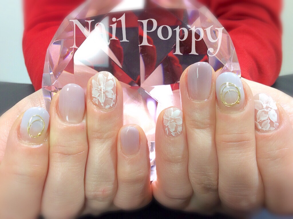 JUGEMテーマ:ネイル シックなスモークカラーと 軽やかなお花のデザイン レースフラワー リクエストいただいたお色を再現 くるくる無造作なワイヤーも素敵 レースフラワーは 自爪が透けすぎないように アンダーカラーを仕込んで 2色とも混ぜ混ぜして作りましたが もう色ができた時点で ネイル仕上がったかのように 満足されてました (人´∀`) うっとり♪ ...