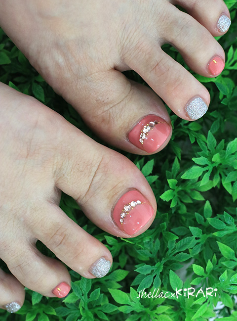 JUGEMテーマ:ネイル 担当:M ギラギララメ入りシェラックフット♪ 単色塗りですよーー! ーーーー 自分の足を自分で塗ってみてつくづく思うのですが、、、 フットこそセルフで塗るのは難しいわけであります。。 ・キワまで塗れない(見えないから。)(甘皮処理をしていないから。) ・先端の断面が塗れない(親指の断面、ハゲてませんか?) ・表面が貝みたいにガタガタ はい、イライラしますね〜(;´Д`) 近くで見られるわけじゃないからいっか、とか、思ってませんか??? ...