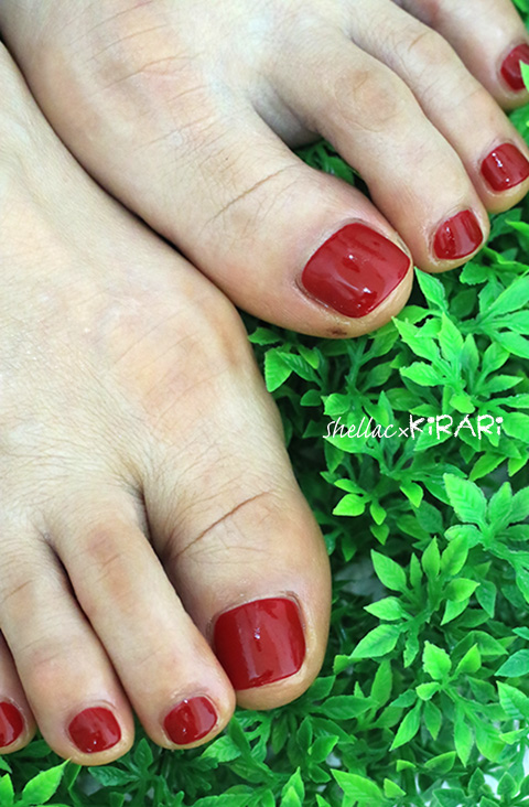JUGEMテーマ:ネイル 担当:H シェラックフットです(´∀`) フットはいつも赤なの!と言うことで、 少し深みのある大人レッドで仕上げました。 これで足を出す準備、OKですね!