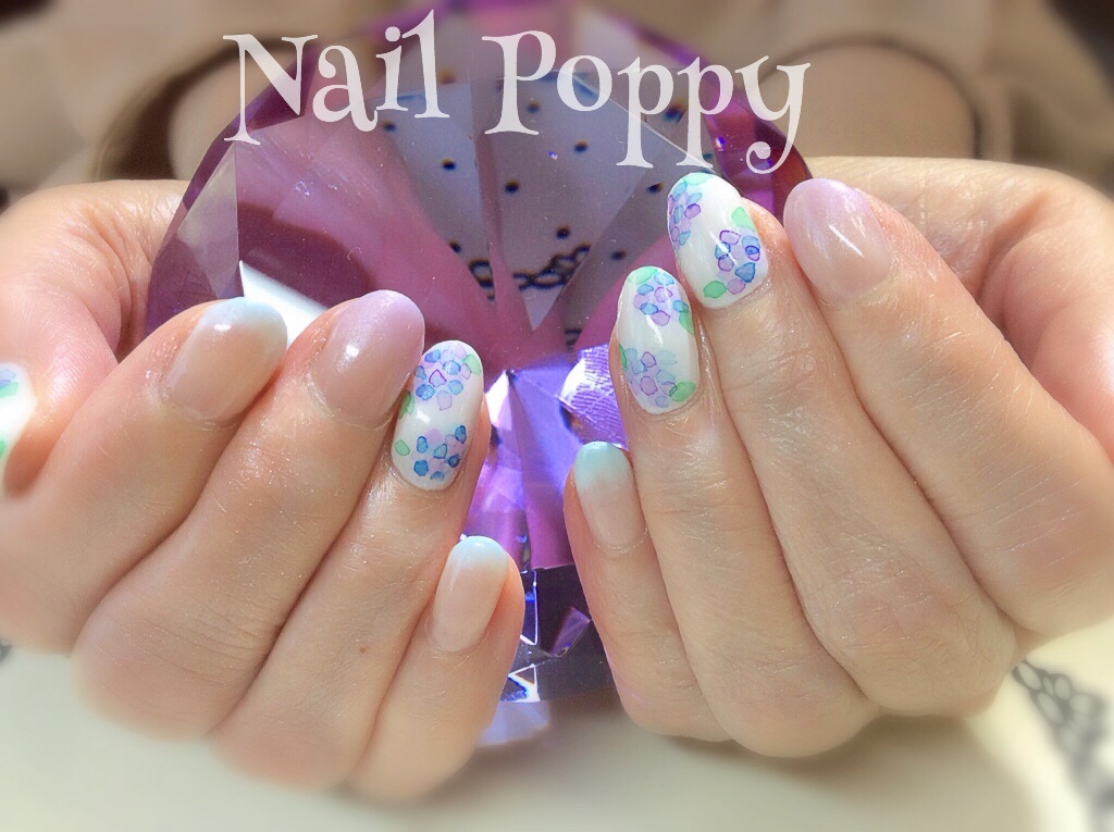 JUGEMテーマ:ネイル 私も大好きなお花です 紫陽花ネイル 淡い色合いで 紫陽花が咲きました たらしこみの透明感が◎ 今日は紫陽花のネイルにしたいと 思って2つほどデザインを お持ちになりましたが ほぼおまかせな感じで φ(・c_・ )かきかき 無事に気に入っていただけました! M様にお似合いのネイルができて 大満足です ☆キュ―(+´...