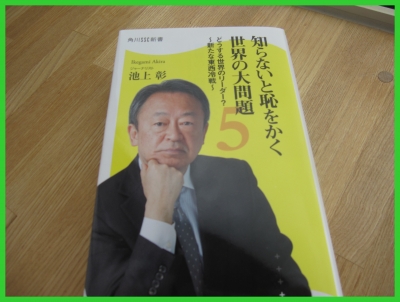 JUGEMテーマ:癒しのスクール 2014・8・11 台風の影響で昨日の夜から土砂降りの雨が降っていましたね 朝の6時にメールの着信音で起こされて「なんだ」と思って見ると北見市からの防災警報 小町川の水位が上がっているので、ちかずかないようにとのお知らせでした 小町川ってすごく浅い川なのにそんなに増水しているのかな〜と思いつつもうひと寝入りです その、雨も上がりましたね こんな日は読書が一番です 池上彰の「知らないと恥をかく世界の大問題」を購入して読んでいました この本は毎年発行せ...