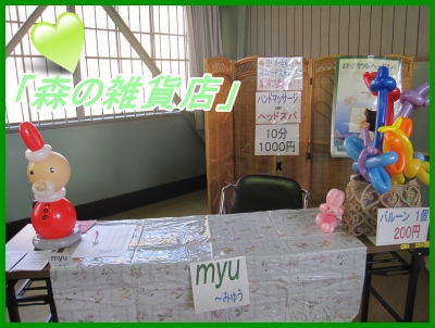 JUGEMテーマ:癒しのスクール2013・11・16今日は緋牛内にあるレストランじねんで『森の雑貨店』が開催されました毎回心配をするお天気にも恵まれ中々の賑わいでしたよ私は今回角のブースに店舗をかまえていますヘッドスパをするのには視角になってよいのですが、何だかお客様が入りづらいみたい一緒に販売しているバルーンは売れるのですが、ヘッドスパが少なかったなでも隣のブースの方と「ヘッドスパってわかりづらいのかもね」とブースを分かりやすくする為に、色々小物を貸していただいたりと試行錯誤をしましたこうやって...
