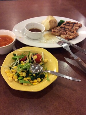 JUGEMテーマ:美容法健康法自分流と食材 「主食、じゃがいもだけかー」 実は、物足りなくなるんじゃないかとずっと感じていたんです。 「何とかならんかな〜。」 意外な欲が・・ この課題を解決するキッカケとなったお話ですよ。 それは・・ 『今日の夕食は、野菜をたらふく食べたい!』 『お米好きの私だが、米抜きでお腹を満たしたい。』 昼食後、思ったことからでした。 その欲を満たすために、私の選択肢から選んだものが・・ 『チキン+サラダバー食べ放題』だった。 ...