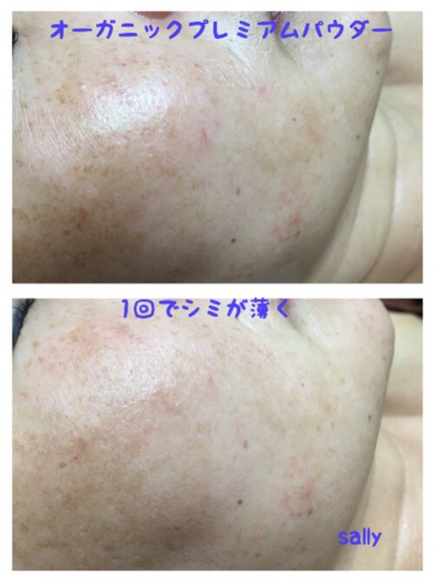 JUGEMテーマ:フェイスケア大阪 京都 交野市オーガニックプレミアムパウダーオーガニックプレミアムパウダー1回施術直後です。 個人差は絶対ありますがこの症例からどなたも何かしら変化は起こりますよ。ホホ全体のシミの変化凄いです。オプションの沈静パックもされています。(3000.−)沈静パックするとお肌表面に残ったパウダーぜ〜〜んぶ入ります。パウダーのふき取りほとんどしなくていいのです。オーガニック直後からお肌が活性するので沈静パックがグングン吸収されます。直後からしっかり保湿することでパウダー...