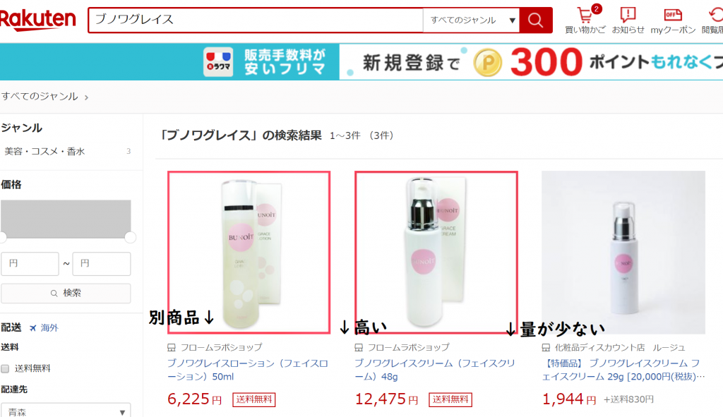 ブノワグレイスクリームを最安値で買える通販は公式販売サイト『BUNOiT GRACE CREAM』(4,980円)ですよ♪ 「本当に最安かな〜?」 とギモンな方に、楽天市場とアマゾンの販売ページを見せますので、チェックしてみてくださいね! 楽天通販サイトでのブノワグレイスクリームの値段は? 通常の商品は12,475円と公式販売サイトの初回購入の2倍ほどの値段になります。 他の商品は別商品だったり量が少なかったり…。 Amazon通販でのブノワグレイスクリームの値段...