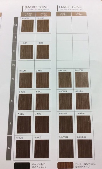 今日は新色カラーのご案内です!外国人の素髪のように赤味をおさえたなめらかな寒色ベージュオルディーブヘルシーラインです!赤味が強い髪の方にはヘルシーシナモン黄味が強い髪の方にはヘルシーヘーゼルがオススメです!今までの寒色カラーは少し硬い仕上がりの色になっていたのですが今回の寒色ベージュは黄色と薄紫色で作るペールベージュが寒色ベージュをなめらかにみせる事ができます。左が12レベルまで明るくなった髪にいれた色で右がバージン毛に染めた色です。むむむ、、私の撮った写真はわかりにくいかも、、興味が...