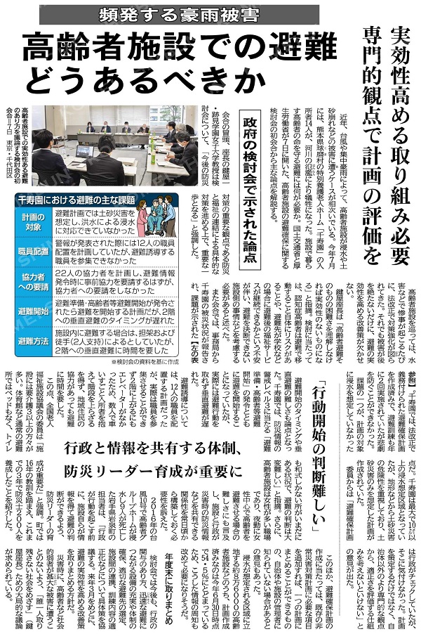 10/26【公明新聞】 頻発する豪雨被害 高齢者施設での避難 どうあるべきか 専門的観点で計画の評価を 行政と情報共有する体制 防災リーダー育成が重要に JUGEMテーマ:防災
