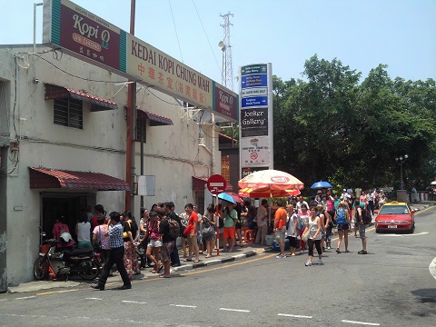 マラッカで最も有名なチキンライスの店。 観光客の少ない平日でも、これだけ並びます。 冷房もなく、店内は外から丸見えなので、客は見世物気分になれること請け合いです。 現地に住んでいる方のブログによると、地元の評判はそれほどでもないそうです。 JUGEMテーマ:海外移住したい!