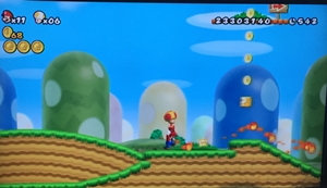 いつも喧嘩ばかりの子供たち。 女の子とは思えない喧嘩に、母の角は出っぱなしです^^;ヤレヤレ が、ゲームをしている2人はとっても協力的^^ よーく見てみると、ゲームがへたっぴーな妹のキノピオを上に乗せ、お姉ちゃんのマリオが上手に走る。 キノッピーは何もすることないんじゃない?と思ったら、必死にファイヤーボタンを押し続けてる妹(笑) 障害物を上手に乗り越える担当と、敵を倒す担当^^ こりゃ名コンビだわ(笑) 子供が考えることって面白い^^