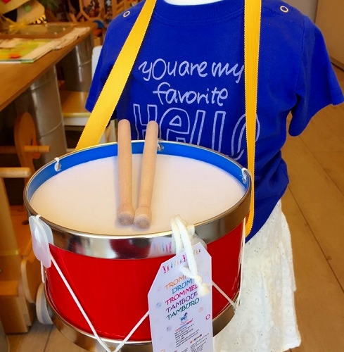 今朝の息子のお弁当、 そぼろ弁当に、温泉たまご。(割る前の) たまごにマジックで『温玉^^』って、書いてたら おっ!! キャラ弁!? って言われたのが、オモシロかった。 さてさて今日は、2歳マネキンの鼓笛ちゃん♪ おもちゃなのに、なかなか良い音です☆ 街中で、首からコレぶら下げて歩いてほしい。 そんな子、見たーい。 きっと、疲れた大人も笑顔になりますよね〜。 ■new classic toys ドラム(ポーランド) 1,800yen+税 メールでのお問合せはコチラからお願い...