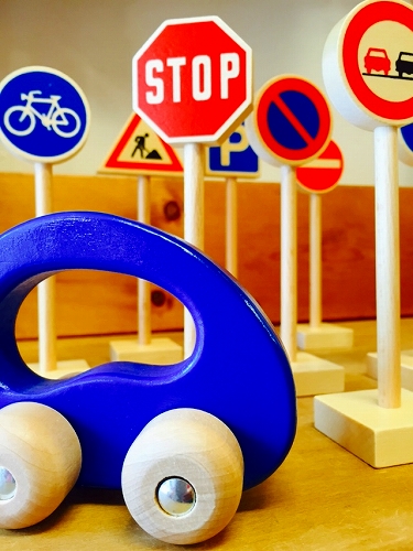 私って、ひねくれてるんかなー? と、思う事しばしば。 もっちろん、木のおもちゃは 大好きなんですよ!? だけど こういう+αのアイテムに、妙に心が踊る。 おもちゃの交通標識♪(これも木製) 他にも、木とか 柵とか、とっても名脇役!! 車遊びや汽車遊びに、抜群に雰囲気を作り上げてくれる。 ナイのとアルのとでは、ずいぶん違うと思うのです。 ちなみに、右上の標識は “追い越し禁止” (ドイツで実際) 日本のそれとの違いなどを、調べて見比べてみたりして楽しい☆ 今までお店にあ...