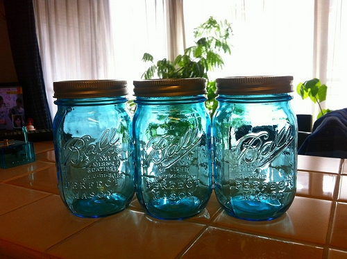 メイソンジャーをもらった。 ものすごく可愛い&このブルーの色がキレイ♡ ふむふむ 何を詰めようか?? 考えるだけでワクワクする。 せっかくなので、小粋なモノを入れた〜い! 我が家にある小粋なモノ・・レーズンとマカダミヤナッツと・・。 ん、ん、上等ですね♪ これがカウンターに並んでるだけで、 生活感たっぷりの普段の台所が、オシャレなキッチンに変貌を遂げる。 雑貨のパワー、スゴイ☆ わーいわーい♪ メールでのお問合せはコチラからお願いします。 ...