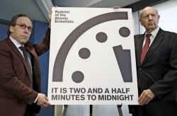 JUGEMテーマ:暮らしの中で 人類滅亡までの残り時間を示す 「終末時計」の針が30秒進んで 残り2分になったそうです。 核不拡散条約の締結や冷戦の終了で、 針が戻ったこともあったのに、 最近は進むばかり… 自国の利益第一の国家主義や 不寛容と差別主義の横行は 人類滅亡に結びつくのでしょうか。 草の根の人々の善意は 今も決して失われないと信じて、 時計の針が戻りますように。